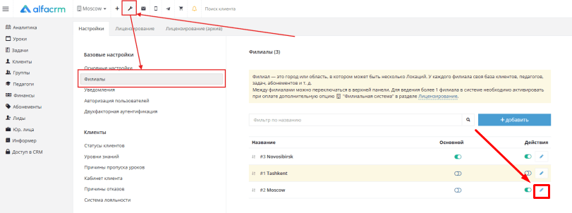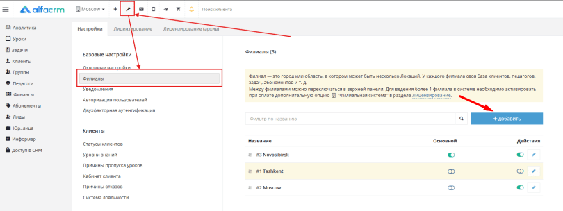 Как работать с филиалами в АльфаCRM
